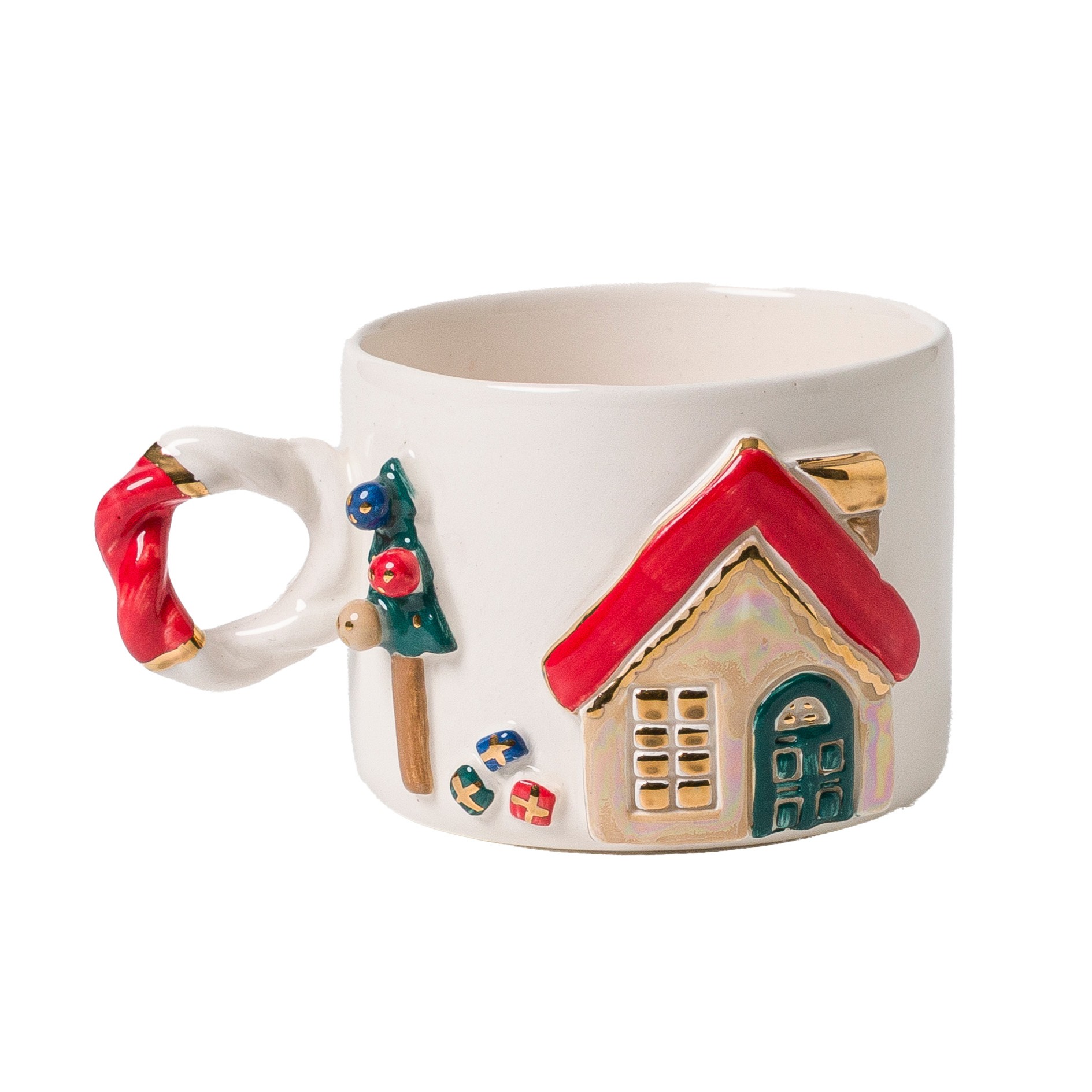 Kutunun en özel parçası, tamamen el yapımı ve altın dekorlu ev modeli fincan.