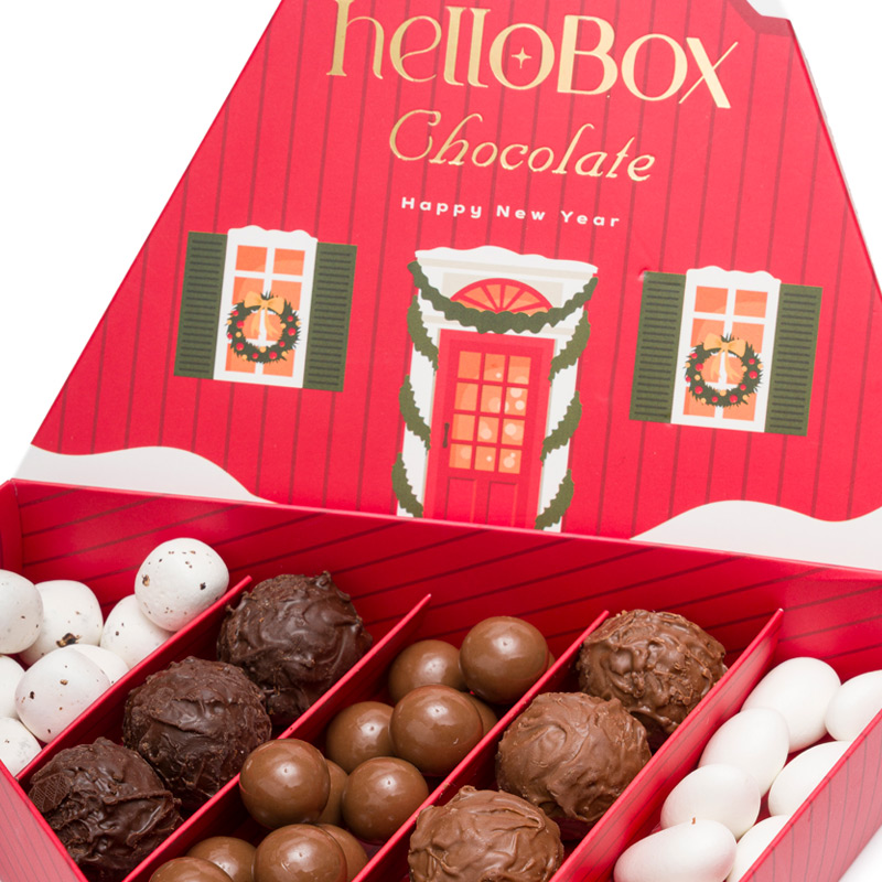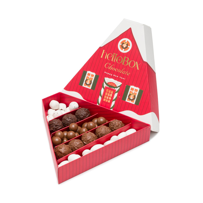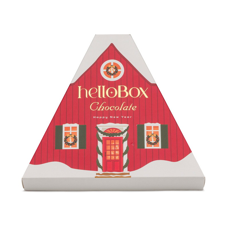 Özel tasarım üçgen kutuda HelloBox Chocolate çikolatalar