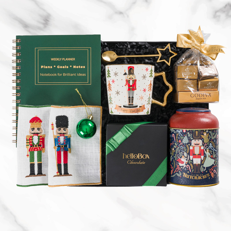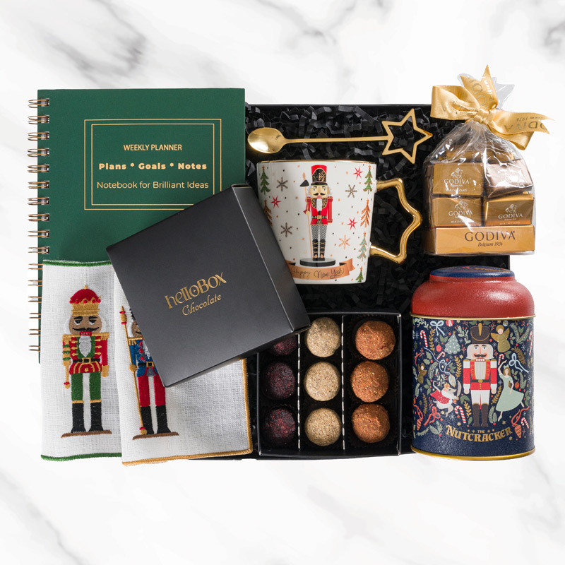 Birden fazla öğe içerir (örneğin çikolata, kupa, mum, ajanda, dekoratif detaylar vs.). HelloBox yılbaşı hediye kutuları da sık sık böyle kombinasyonlar sunar. (HelloBox)
